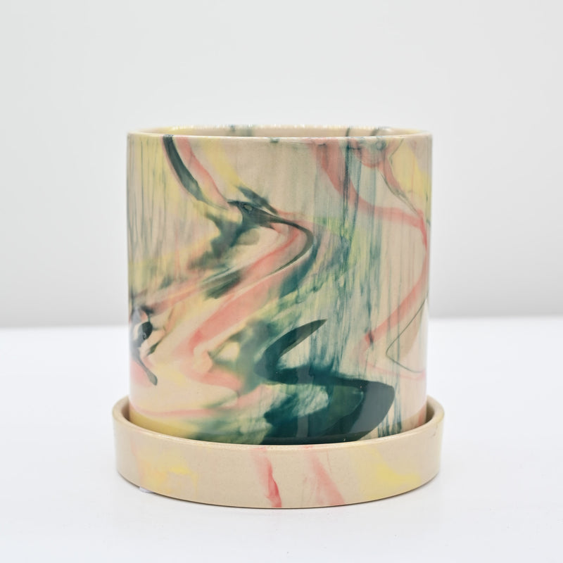 Blue and Terracotta colored pedestal planter