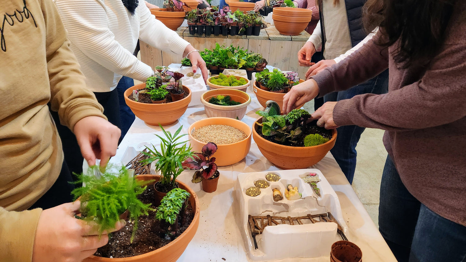 Looking for a smaller setting? Groovy has creative classes and workshops for all ages. Sign up with your plant friends for a relaxing project after work, bring your mom to craft together, or attend a Fairy Garden Tea Party with your little gardeners!