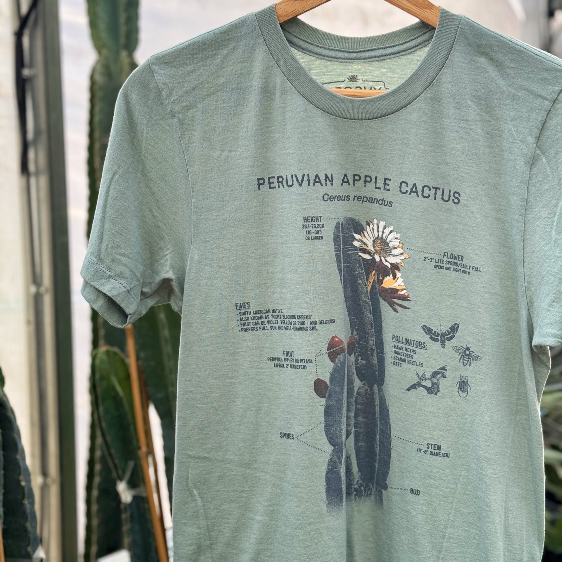Introducing our NEW Botanical line of shirts!! Perfect for you or the plant lover in your life--wear this Peruvian Apple Cactus to show everyone how much you adore plants! These shirts are very soft and slightly fitted. We like to wear them even when we are not working!