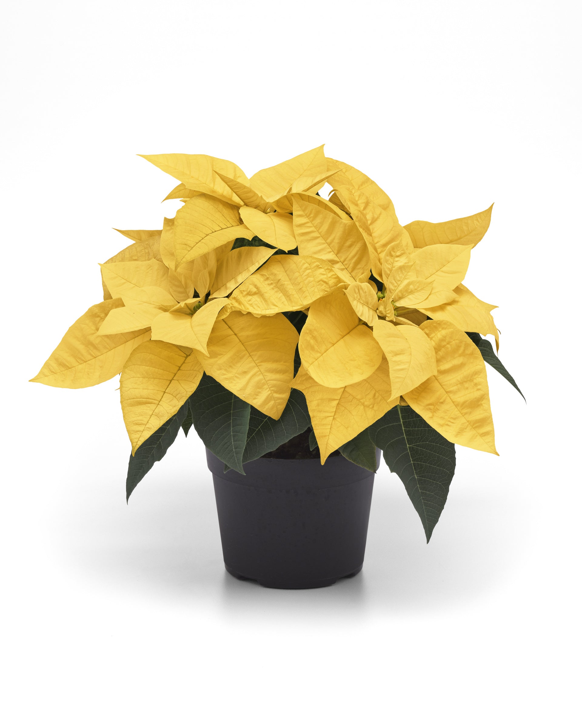 The best kind of yellow snow you'll find! These Poinsettia are golden-yellow and bring to mind dappled, evening sunlight hitting a fresh snow bank. These holiday plants have bright and cheery on lock and instantly add warmth and presence to your holiday decor.